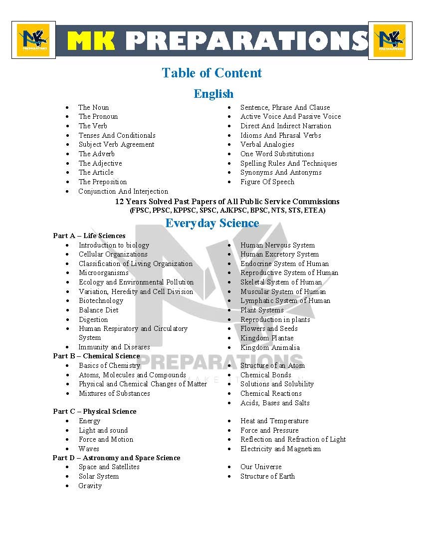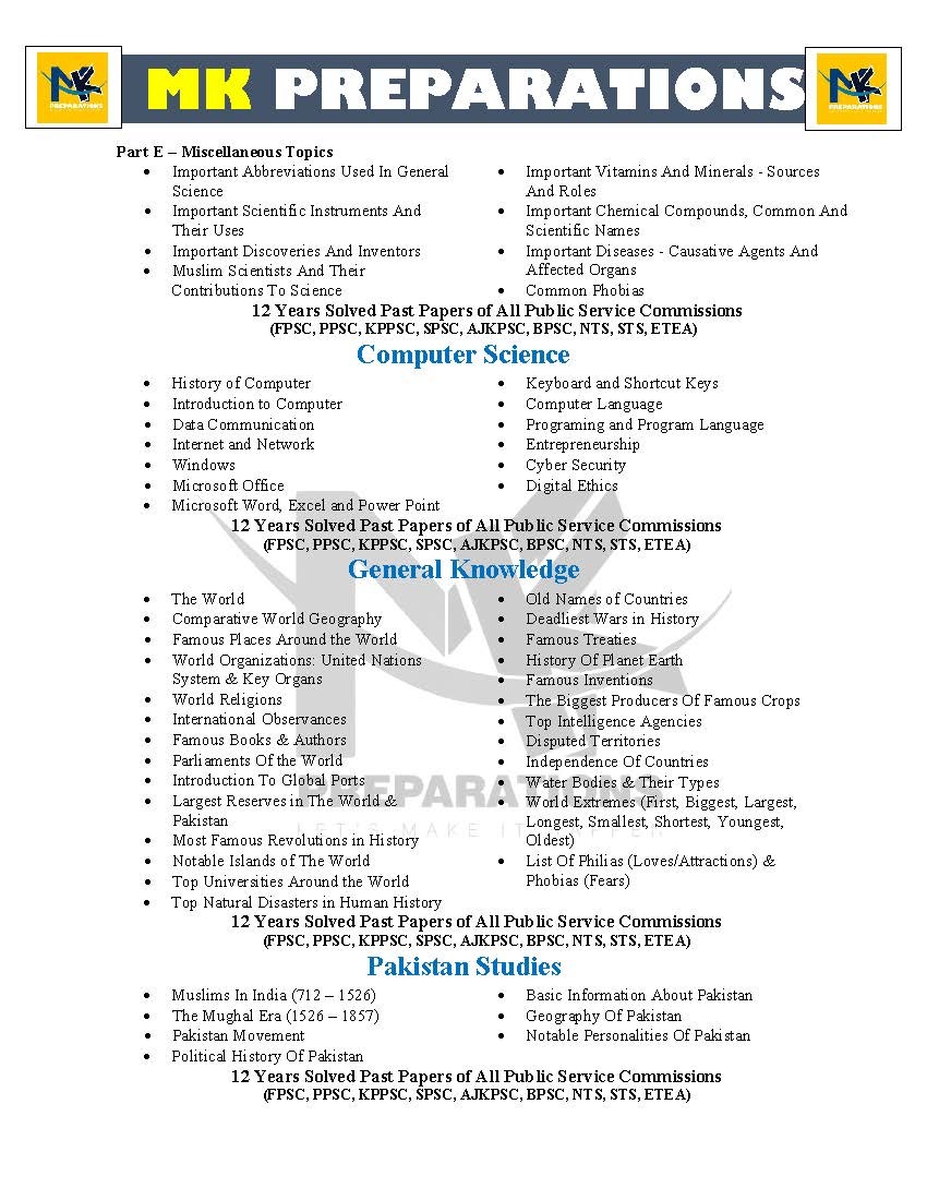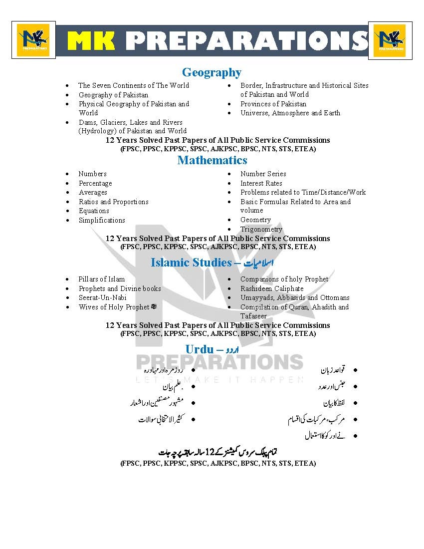 Get complete preparation for all one-paper government job exams in Pakistan with this most comprehensive and exam-oriented guide by MK Publications. This book is specially designed to cover all 10 major subjects, along with 12 years solved past papers from all Public Service Commissions.