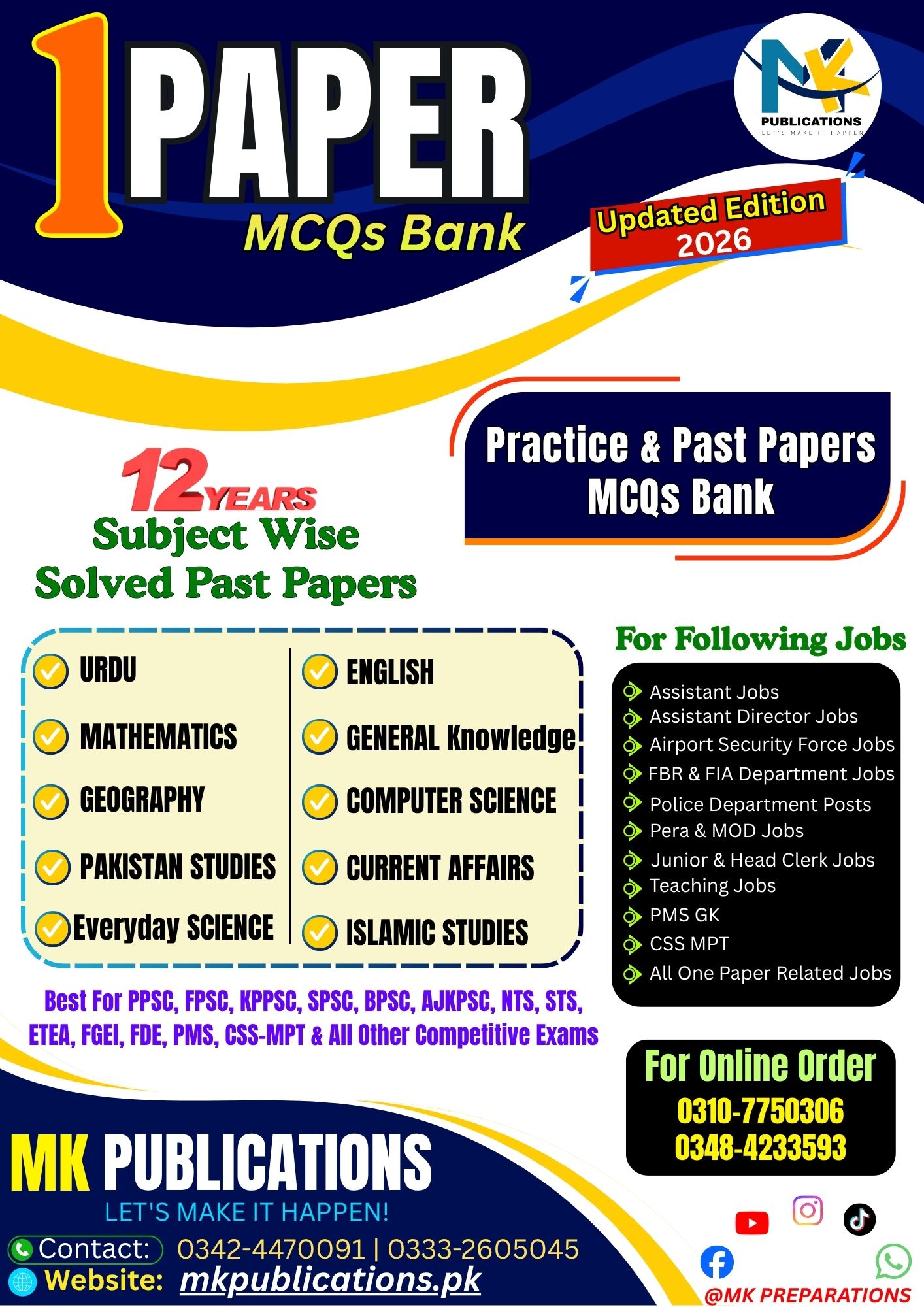 One Paper Preparation Book 2026, One Paper Notes Pakistan, Solved Past Papers 12 Years, PPSC FPSC KPPSC Preparation, Assistant Jobs Guide, Clerk Jobs Preparation, ASF FIA FBR Notes, General Knowledge MCQs, Everyday Science Notes, Computer MCQs, Government Jobs Preparation Pakistan, MK Publications Books