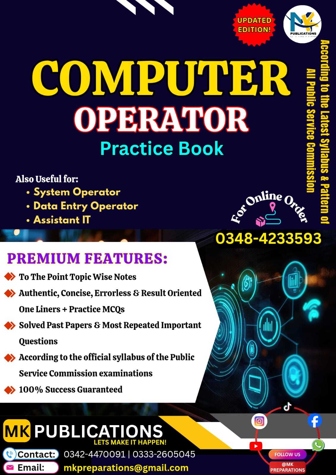 Prepare for success in all Computer Operator and IT-Related Competitive Exams with the most comprehensive and exam-oriented Computer Operator Complete Guide by MK Publications. This book is specially designed for aspirants who are preparing for exams conducted by PPSC, FPSC, SPSC, BPSC, AJKPSC, KPPSC, NTS, OTS, and other testing agencies in Pakistan.