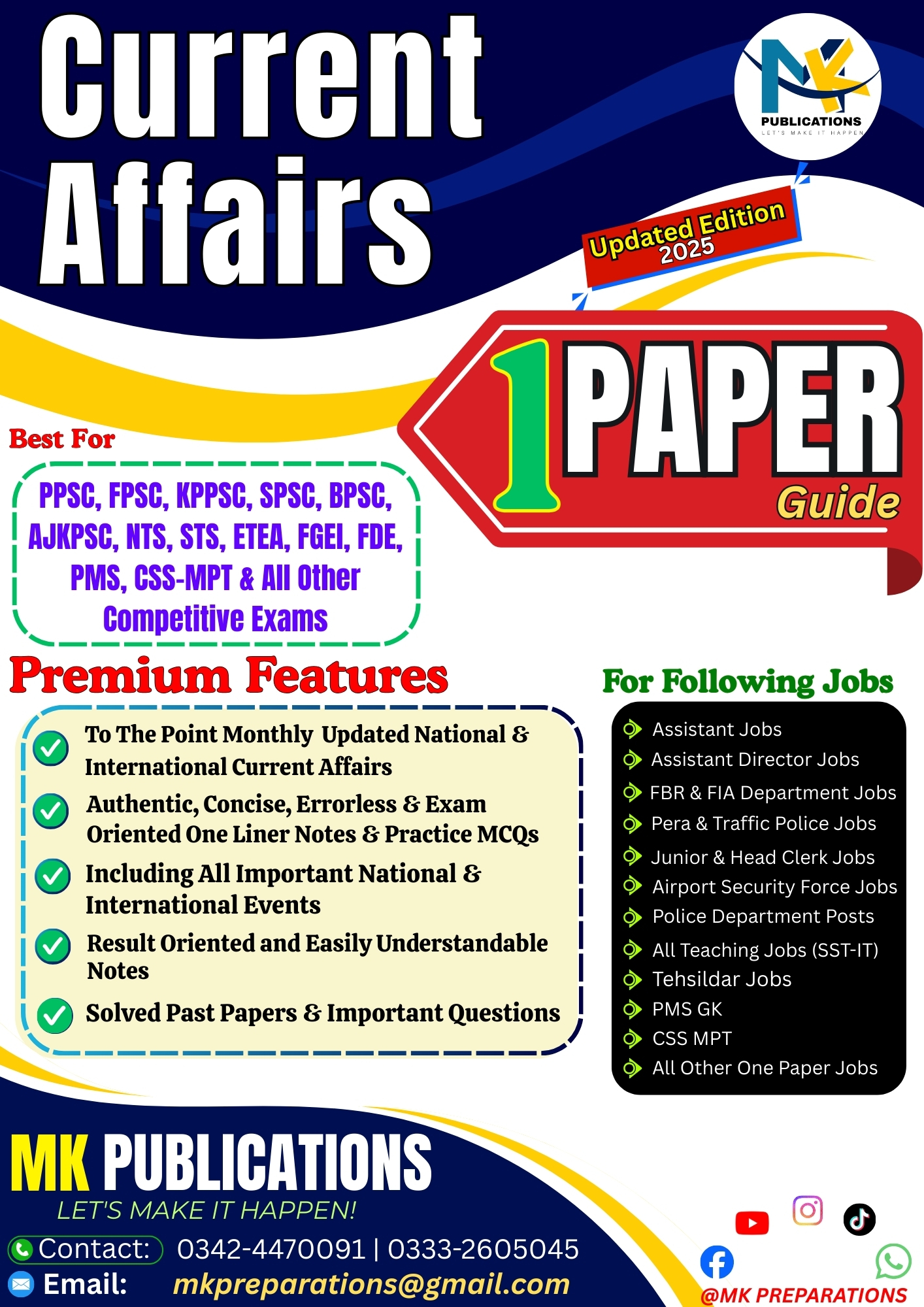Prepare smartly for all One Paper Government Jobs with the most comprehensive and exam-oriented Current Affairs / National & International Affairs Notes by MK Publications. This book is specially designed for aspirants preparing for competitive exams conducted by PPSC, FPSC, SPSC, BPSC, AJKPSC, KPPSC, NTS, ETEA and other testing agencies in Pakistan.