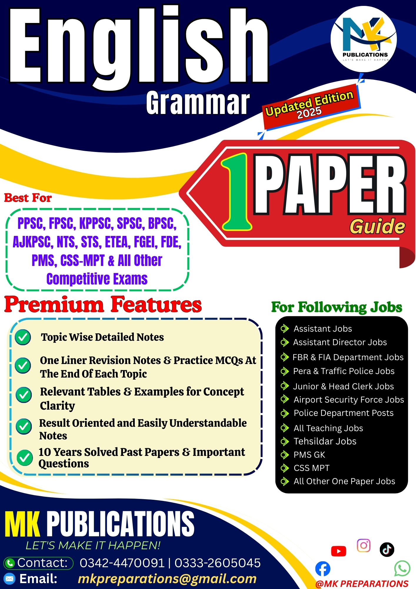 Prepare smartly for all One Paper Government Jobs with the most comprehensive and exam-oriented English Grammar Notes by MK Publications. This book is specially designed for aspirants preparing for competitive exams conducted by PPSC, FPSC, SPSC, BPSC, AJKPSC, KPPSC, NTS, ETEA and other testing agencies in Pakistan.