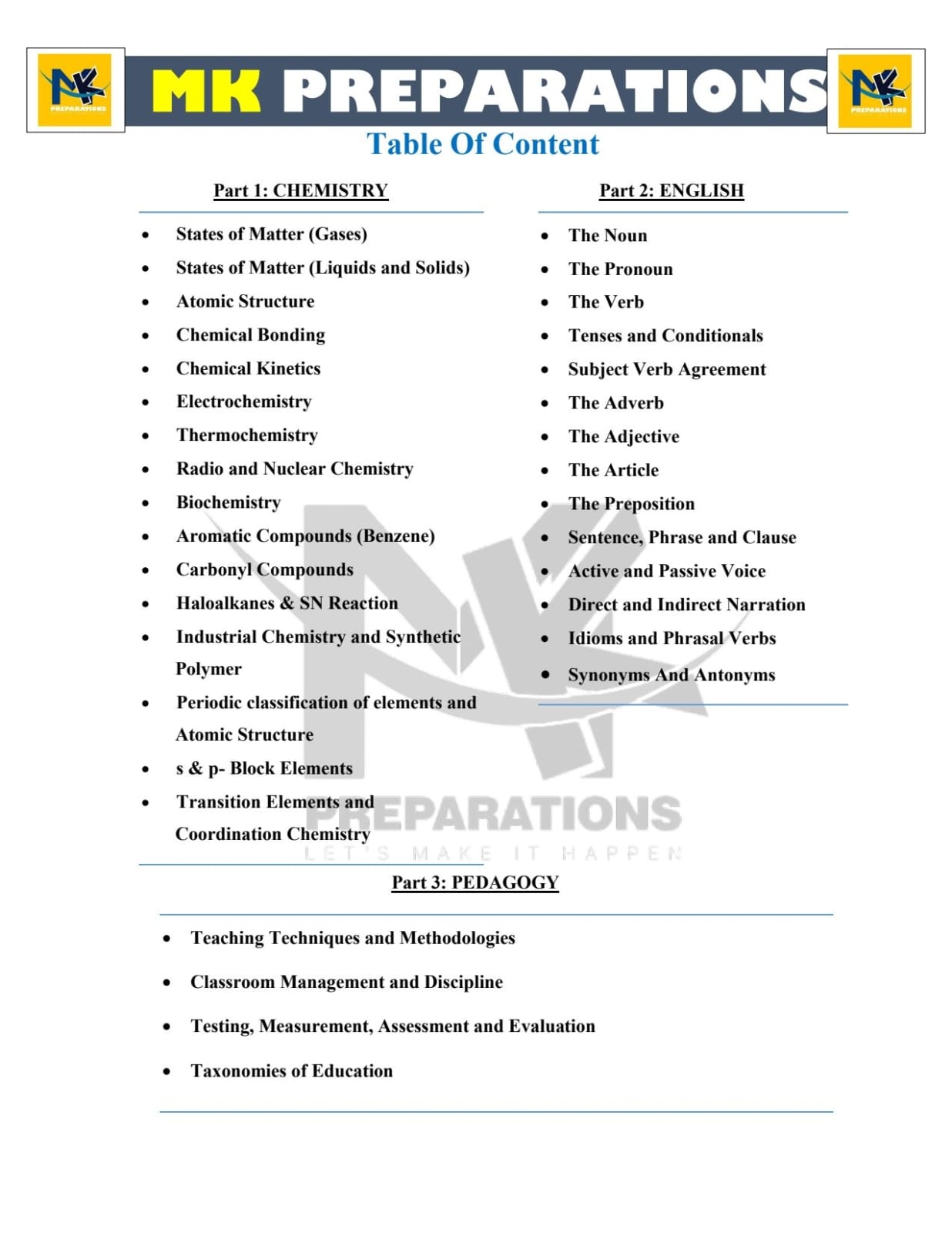 Complete syllabus coverage – 16 Chemistry + 14 English + 4 Pedagogy topics