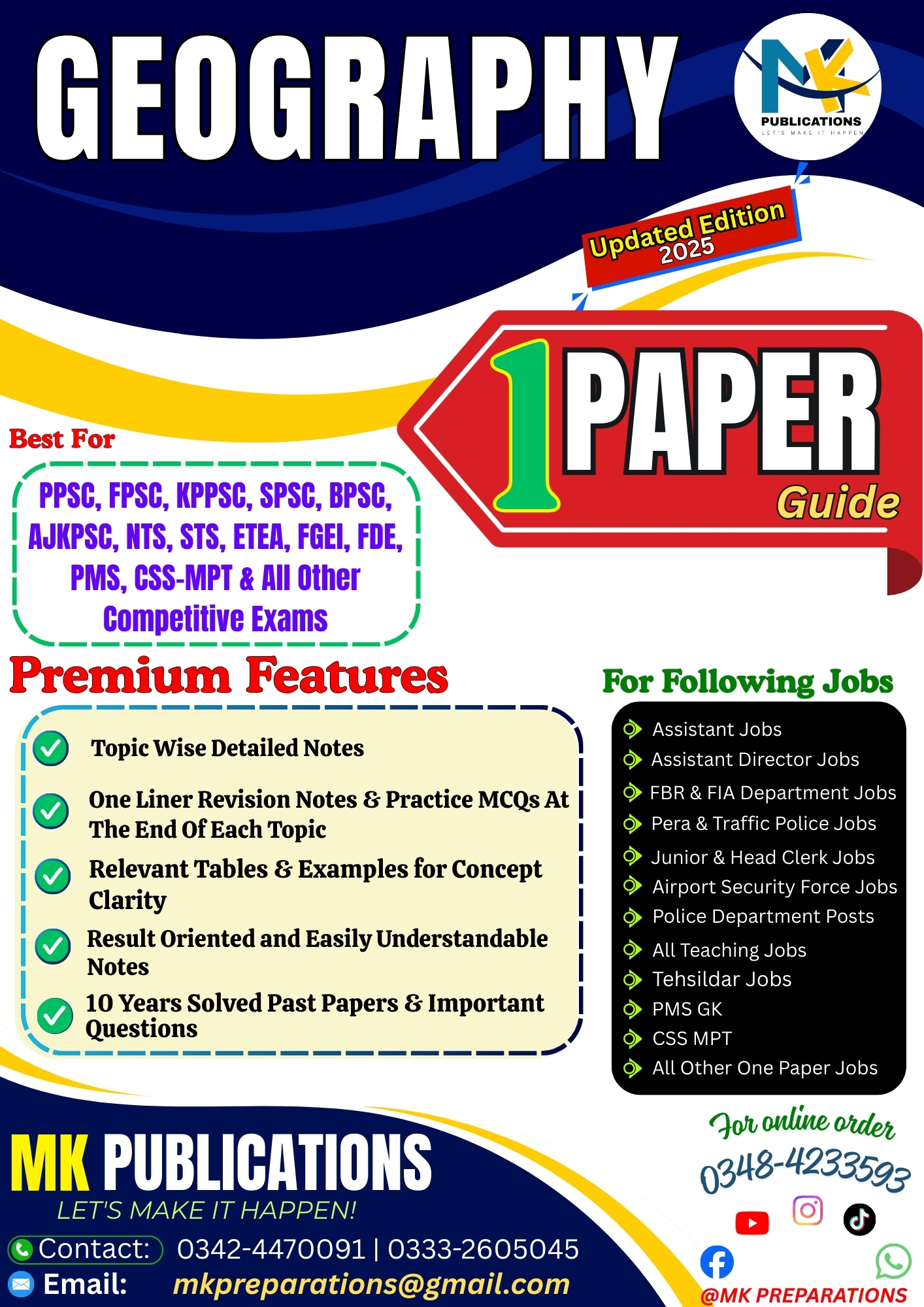 Prepare smartly for all One Paper Government Jobs with the most comprehensive and exam-oriented Geography Notes by MK Publications. This book is specially designed for aspirants preparing for competitive exams conducted by PPSC, FPSC, SPSC, BPSC, AJKPSC, KPPSC, NTS, ETEA and other testing agencies in Pakistan.